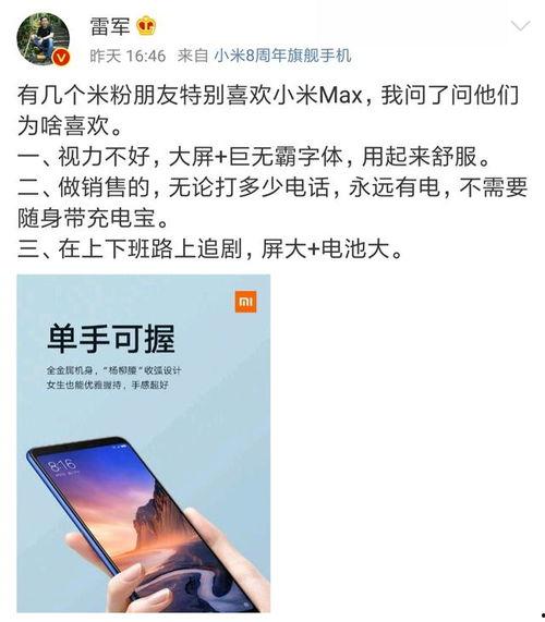 手机控们,是不是已经迫不及待想要了解最新的手机资讯了呢?今天,就让我带你一起走进雷军的手机世界,看看他最近都爆了哪些关于手机的猛料吧!